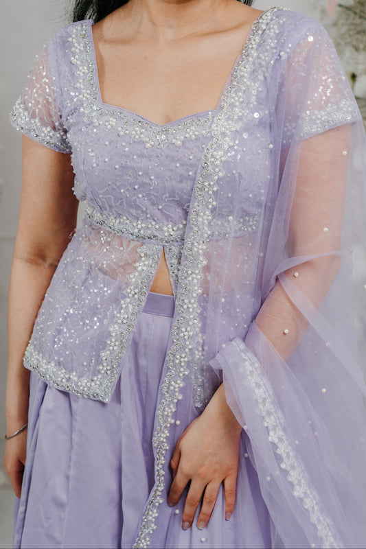 Lavendar Thread Embroidered Lucknowi Georgette Suit