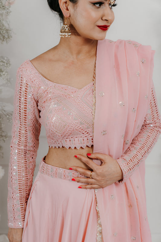 Blush Pink & Silver Sequins Embroidered Lehenga