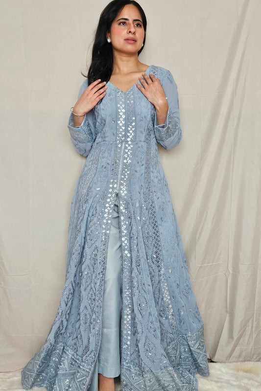 Pastel Blue Georgette Anarkali Set with Slit Style