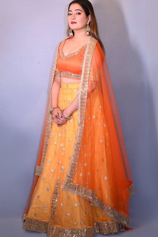Vibrant Orange & Yellow Embroidered Lehenga Set