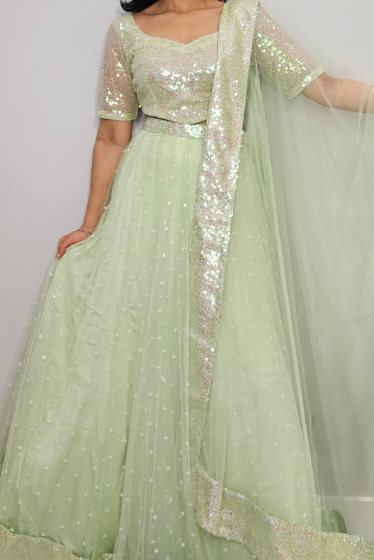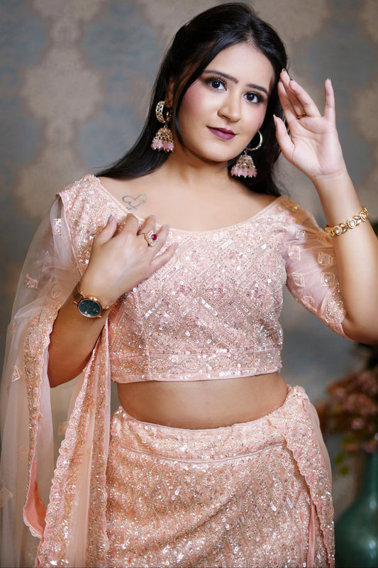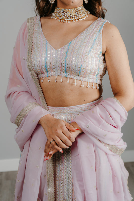 Blush Pink & Silver Sequins Embroidered Lehenga