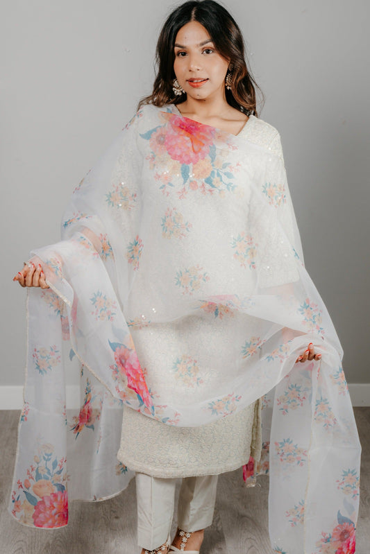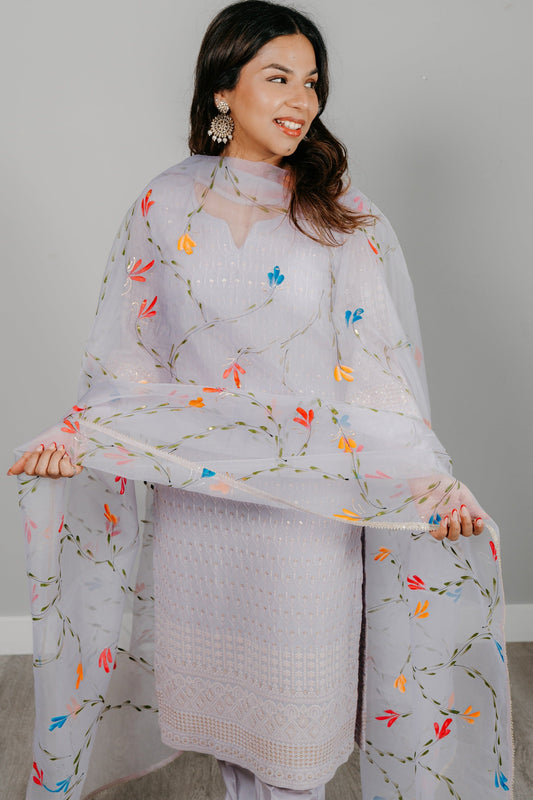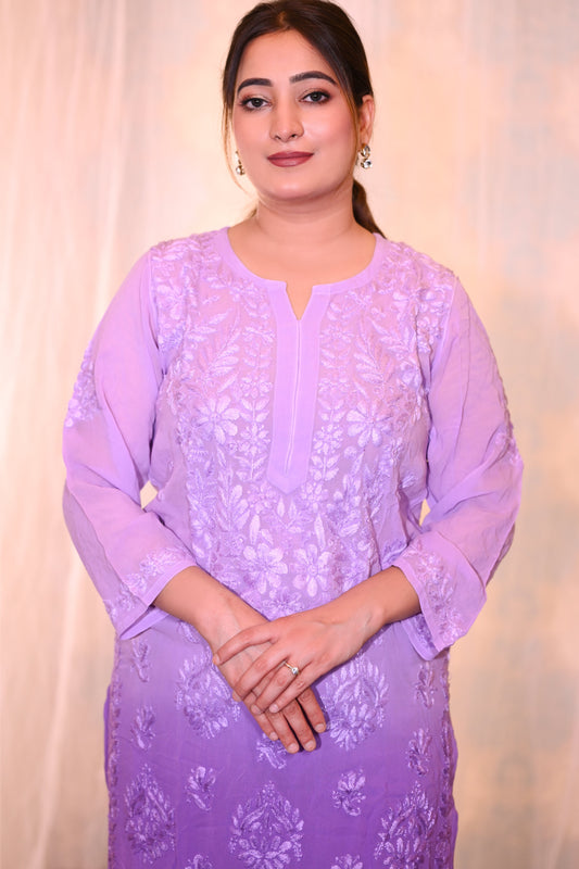 Lavendar Thread Embroidered Lucknowi Georgette Suit