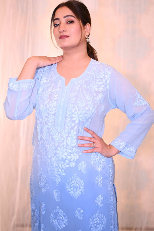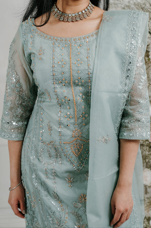 Light Teal Blue Embroidered Sharara/Pant Suit