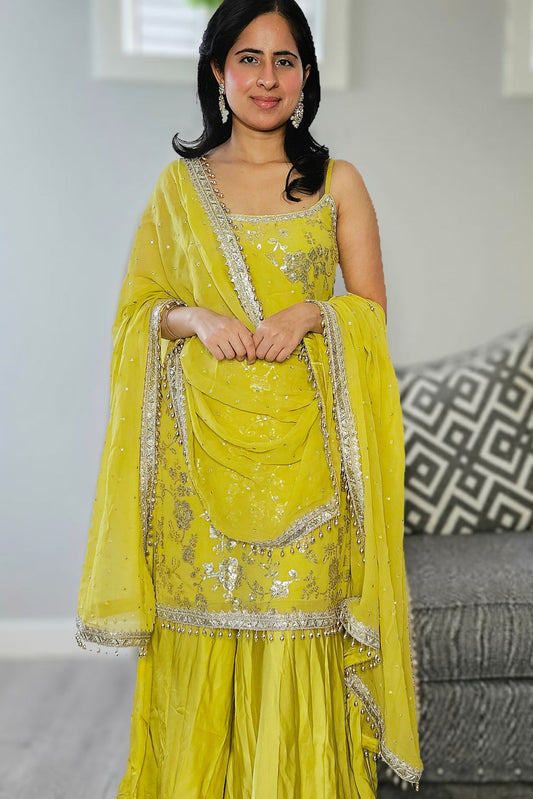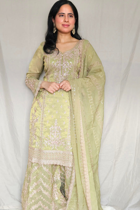 Mehndi Green Zari Embroidery Shimmer Organza Sharara