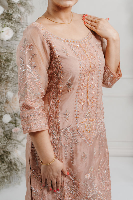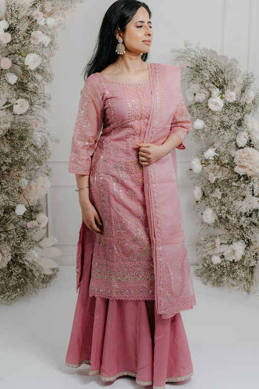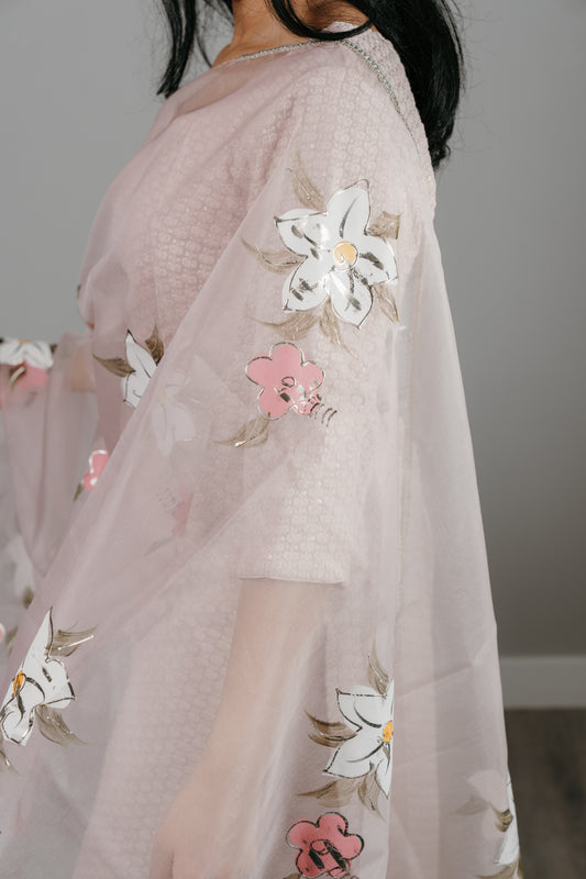 Light Pink Thread Embroidered Lucknowi Georgette Suit