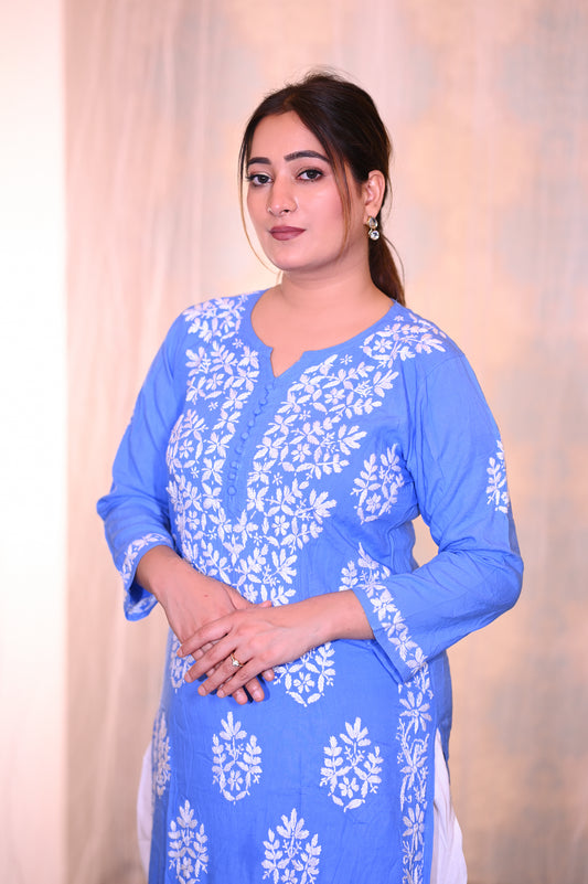 Royal Blue Indigo Embroidered Kurta Set