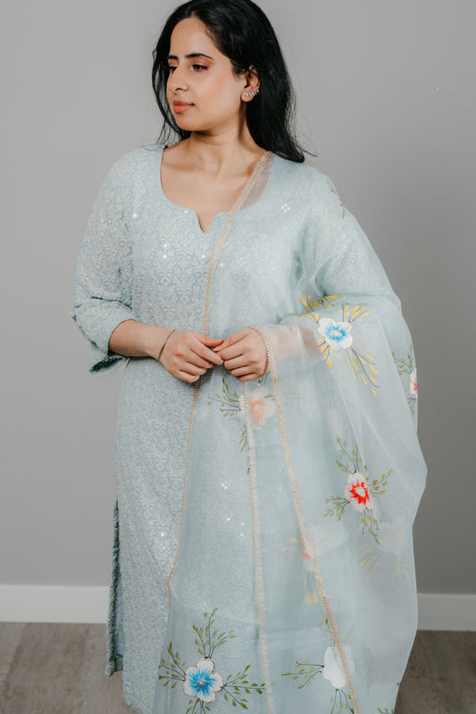 Sky Blue Thread Embroidered Lucknowi Georgette Suit